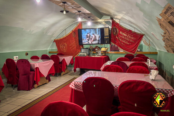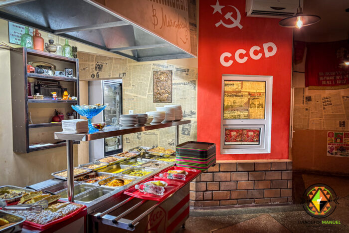 Qui l’atmosfera cambia completamente. La USSR Cantine è una mensa in stile sovietico, molto più spartana anche se apparentemente creata per i turisti.
